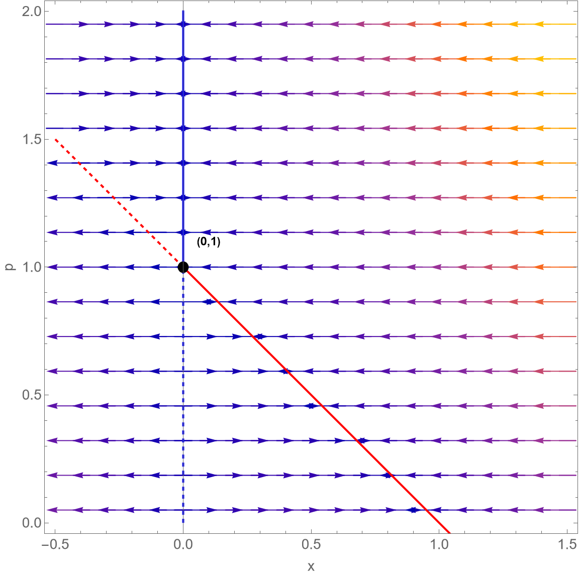 相图:鞍点(沿一个方向发散,另一方向收敛)。
