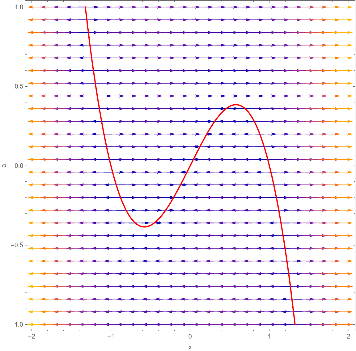 - 当 $|a| < \frac{2\sqrt{3}}{9}$:系统有三个平衡点(稳定-不稳定-稳定交替,实际为 不稳-稳-不稳);
